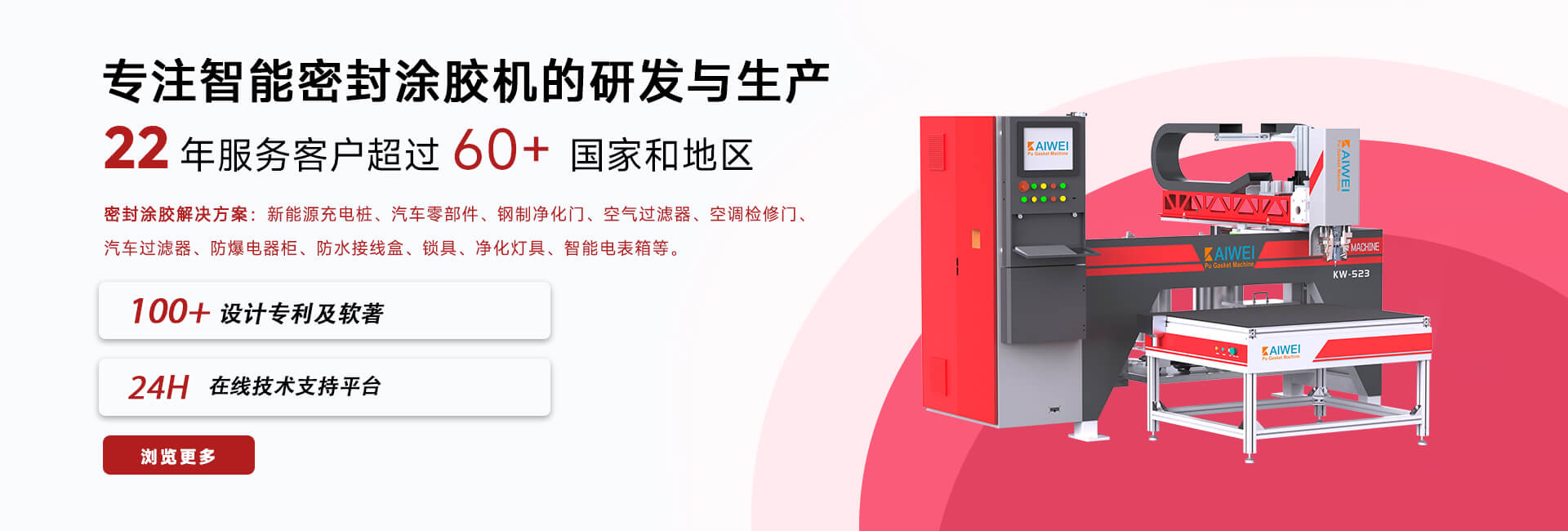 2022年6月凱偉新推出單點(diǎn)膠機(jī)混合頭,控制系統(tǒng)任意切換全自動(dòng)密封涂膠機(jī),可隨意切換不同的膠水,免去更換膠水的繁瑣步驟,使您工作效率更